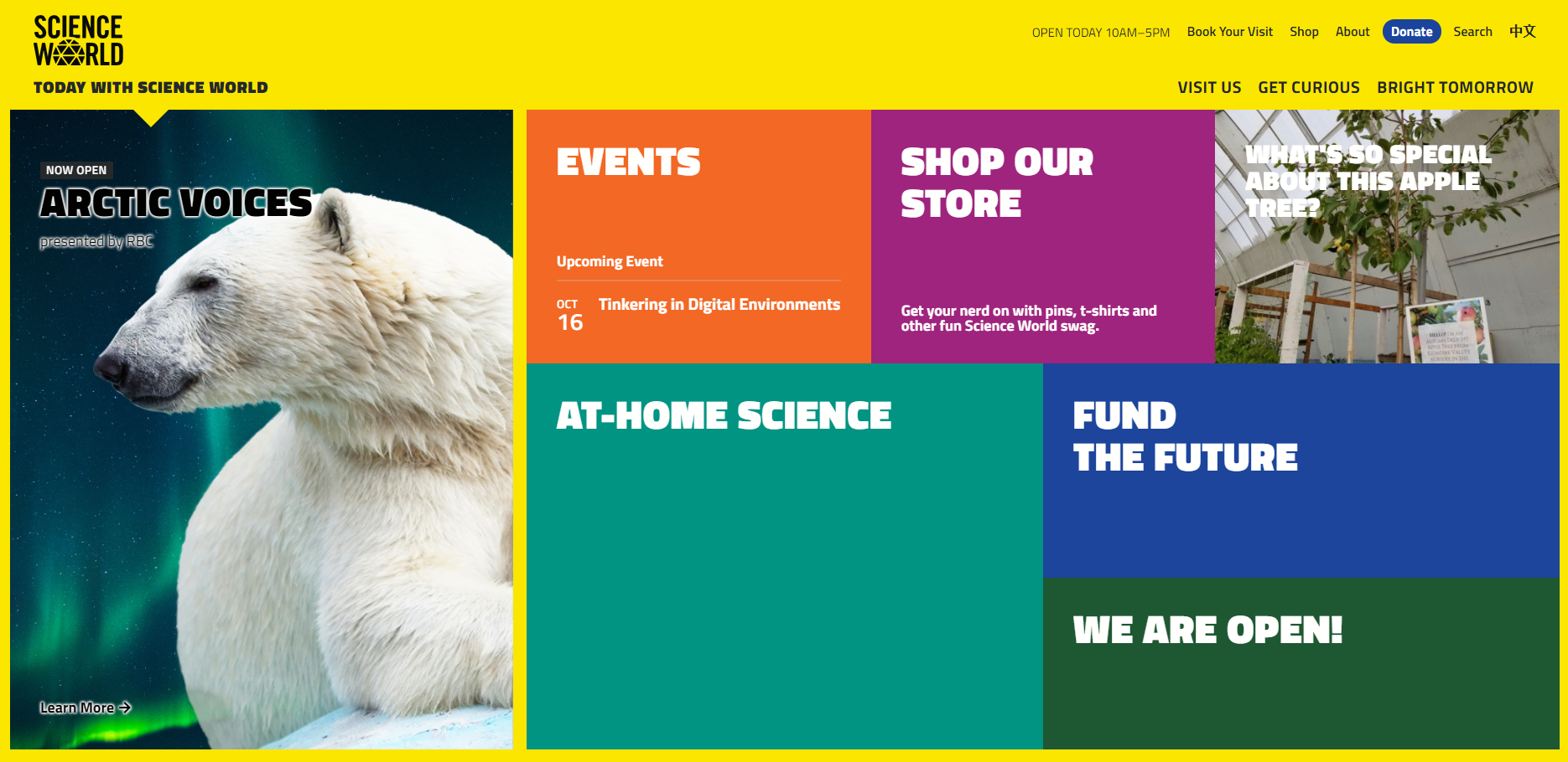 Science World’s website uses visual cues such as high colour contrast, various font weights, size, and styles, and efficient tab-through navigation.