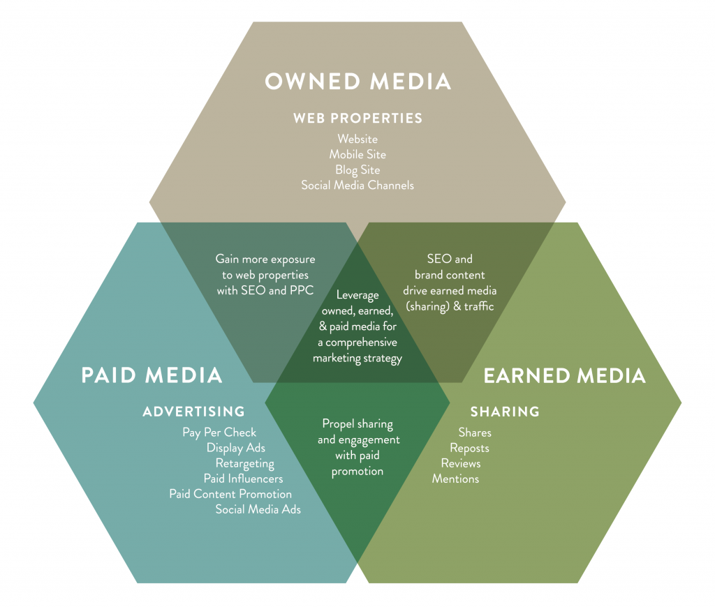 Ensuring that you have a healthy mix of owned, earned, and paid media will assist you in reaching goals across the whole customer journey. While each distribution method is important on its own, each channel overlaps with key opportunities for reaching your audience. Understanding how to build a strong mix of content, along with measuring the success of each method, will assist in optimizing your marketing efforts.