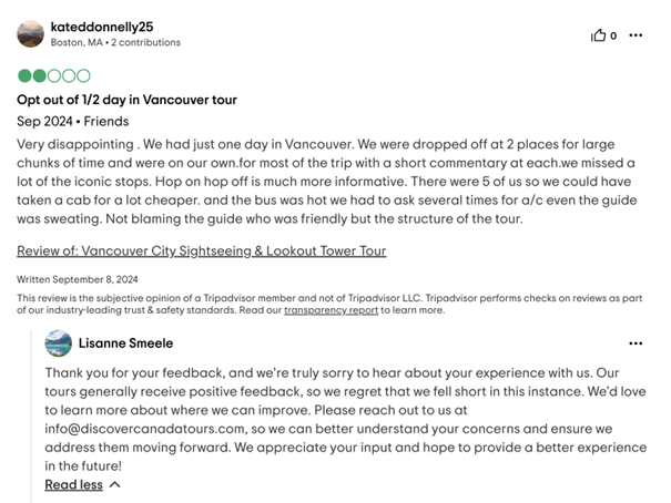 Or see this great example from the typically highly rated, Vancouver-based Discover Canada Tours: