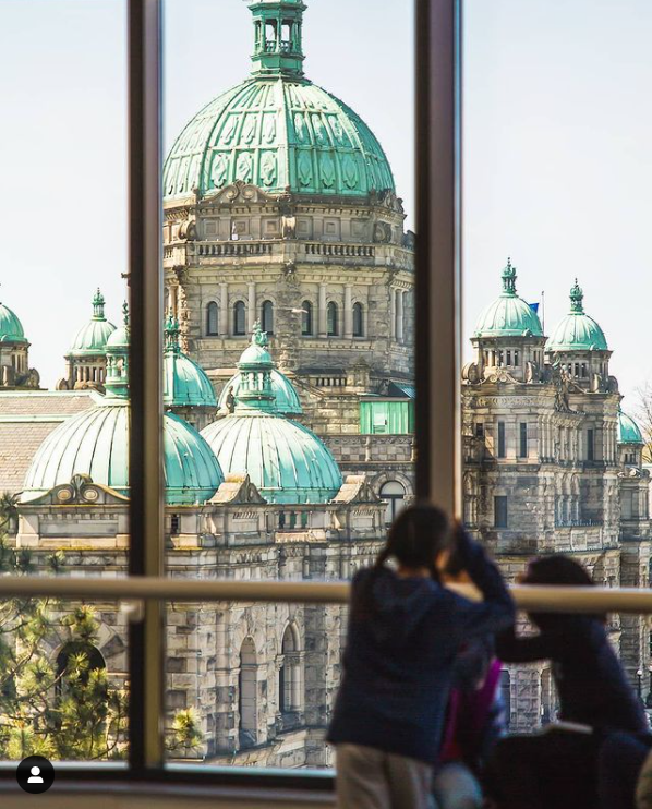 This attention-grabbing image of the BC Legislature Building from the Royal BC Museum in Victoria by @sftravels focuses on the view rather than the people.