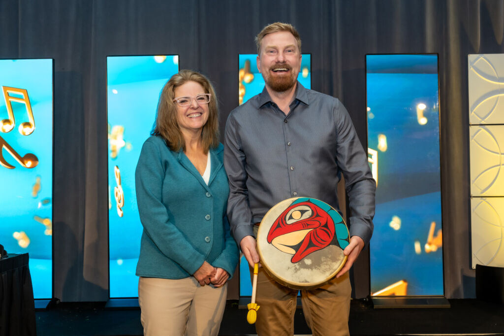 📷Left to Right: Kathleen Harvey, Manager of Visitor Services at Destination BC, presents the Inclusive & Accessible Tourism Award to Jerry Daoust, Owner and Head Guide at Reel North Adventures, at the 2025 BC Tourism Awards Gala on March 6, 2025.