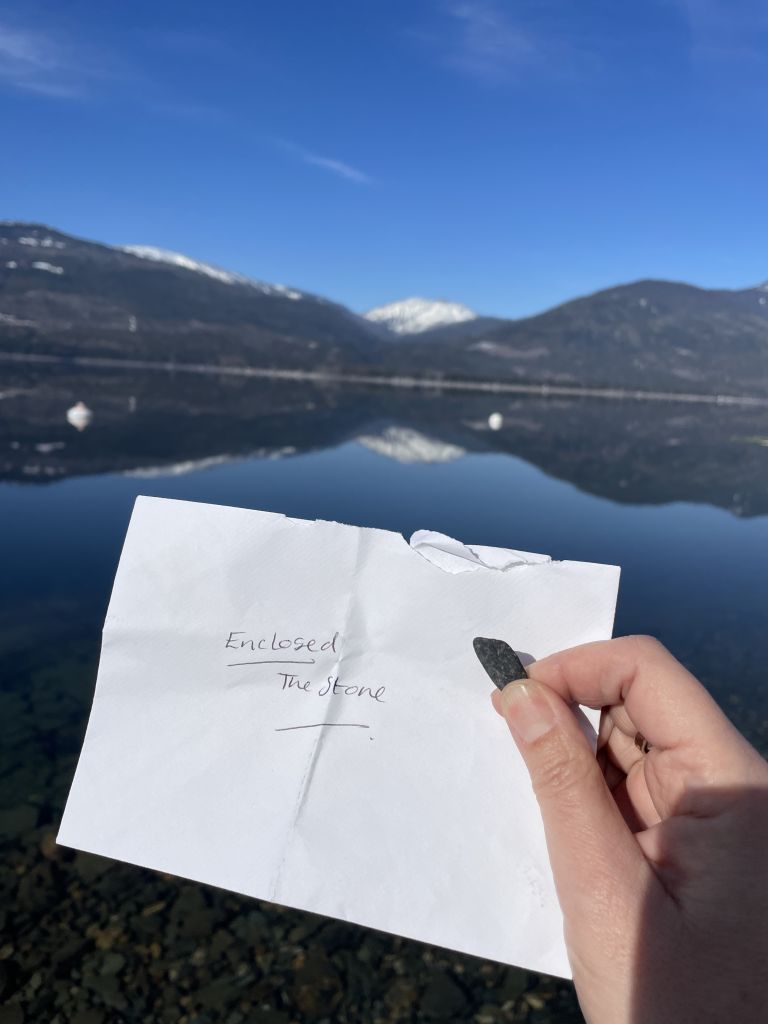 Earlier this year, our team received a heartfelt letter from a traveller named Lynne, all the way from England. Accompanying the letter was a stone. Lynne shared that she had taken it from Shuswap Lake as a happy memento during a holiday to our beautiful province many years ago. However, a sense of responsibility tugged at her heart, and she felt that the stone should be returned to its rightful home.