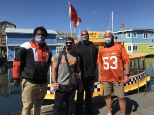 From a cultural experience with Talaysay Tours, to a scenic Harbour Air flight to the capital and stand-up paddle boarding lessons with the Gyro Beach Board Shop, the players enjoyed a full 4-day itinerary throughout Vancouver and Victoria. Not only was the trip shared on social media channels from the BC Lions and Destination BC, but CHEK News also joined in on the fun at Axe & Grind in Victoria for a live spot on the evening news. Thanks to Joel Figueroa, Claudell Louis, and James Lyell for sharing their adventures with us, and a huge thanks to Tourism Vancouver, Destination Greater Victoria, and all of the tourism businesses who helped make this trip a success. Check out some of the action below, and stay tuned for even more content from the trip.