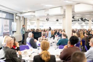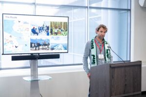Image 1 | Destination BC’s Rosie Barcroft presenting at IMM UK 2025; Image 2, 3 | Dan Marsland from Weird Fish presenting at IMM UK 2025 Luncheon sponsored by Destination BC.