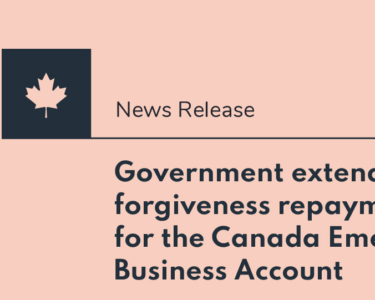 Read the full Government of Canada news release, here: https://www.canada.ca/en/department-finance/news/2023/09/canada-emergency-business-account-government-extends-repayment-and-partial-loan-forgiveness-deadlines.html