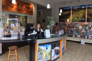 Plexiglass separation panels at Revelstoke Visitor Centre