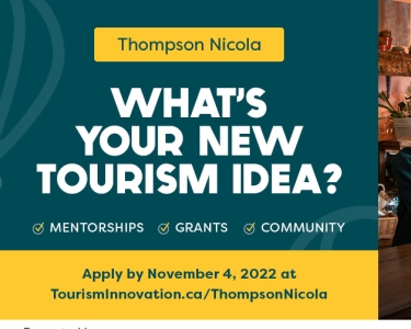 “This is a tremendous opportunity for new tourism ideas to be realized in the Thompson Nicola area of the Thompson Okanagan region. The “Spark” program enables and encourages those with innovative tourism concepts to have the chance to see them come to life. We are very excited that Destination BC has brought this opportunity to the Thompson Okanagan region.”