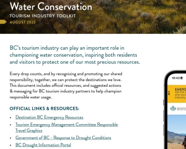 In response to BC’s summer 2023 extreme drought conditions, Destination BC has worked with the Province and the Tourism Emergency Management Committee to develop a new Water Conservation Toolkit for tourism partners in BC.