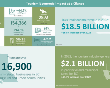 Tourism is one of British Columbia’s greatest economic drivers, generating more than $18 billion in revenue in 2022 and contributing $7.2 billion to our provincial GDP. That’s more than any other resource industry, including forestry ($1.7 billion), agriculture and fisheries ($3.4 billion), oil and gas ($4.5 billion), and even mining ($5.4 billion). It’s also one of the largest employers in the province and is mostly made up of small businesses (92%) and people who have dedicated their lives to the sector.