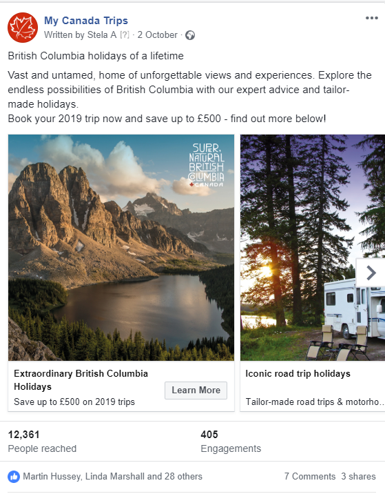 Tasked with encouraging geographical growth of visitation into areas with capacity, the Destination BC’s UK team worked with UK tour operator Stewart Travel/My Canada Trips over the course of a year to achieve increased room night and passenger number growth into British Columbia. The team attended World Travel Market, and supported product development before undertaking a joint marketing campaign. The team developed new itineraries tailored to the tour operators needs and oversaw their implementation.  To ensure tour operator staff were able to effectively sell the new product, the team conducted training with the sales team before investing in marketing support to capitalise on the new itineraries and staff knowledge.  Promotion targeted both consumers and the trade using direct mails, e-shots as well as paid and organic social media, generating great overall engagement.  The campaign also used press advertising in The Herald and Scottish Daily Mail with a combined circulation of over 150,000 readers. Locations across BC were promoted, including Campbell River, Manning Park, Osoyoos, Ashcroft, Invermere, Golden, and the Sunshine Coast. See more at http://www.mycanadatrips.co.uk/destinations/british-columbia.