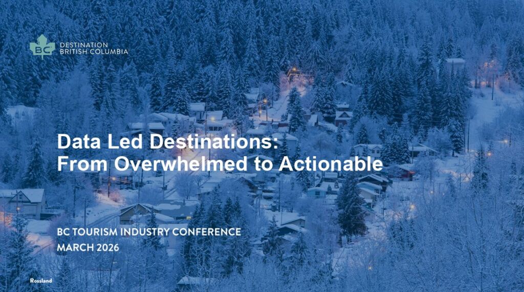 This session at the BC Tourism Industry Conference explored how to use tourism data to support decision-making. Presented on March 5, this discussion was led by Erin Hodgins, Director of Research & Analytics; Dr. Jarrett Bachman, Scholar-in-Residence; and Kelvin Mok, Manager, Digital Analytics. Key topics included:
