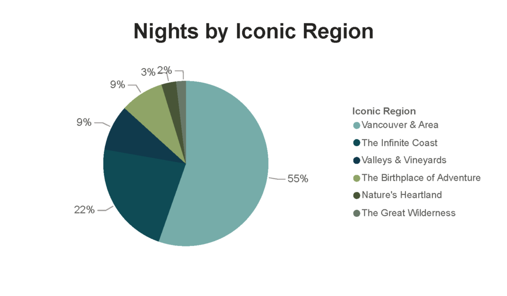The 2025 Market Profiles contain the latest information and highlights on Destination BC’s key domestic markets. These profiles summarizes target markets, including the size of the market, volume and expenditures in BC, and traveller and trip characteristics. The latest market highlights and indicators of future travel are also included. Highlights and factors are ever-changing—as such, those available here are time-stamped from the date of distribution.