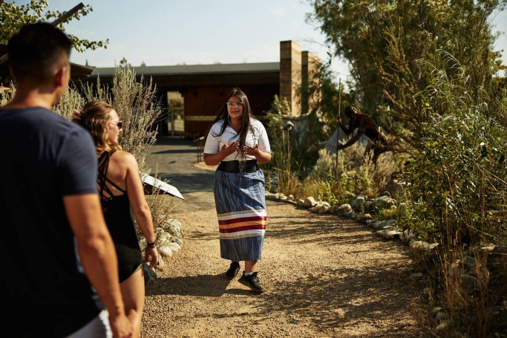 Two people taking a tour at the Nk’Mip Desert Cultural Centre | Hubert Kang
