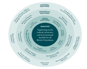 We embrace our responsibility as part of the large tourism ecosystem fulfilling the needs of industry. Destination BC actively supports organisations on matters that are important to tourism business in BC, such as labour force (go2HR), climate action (Ministry of Environment and Climate Change Strategy), education (Ministry of Advanced Education and Skills Training), land management (Ministry of Ministry of Water, Land and Resource Stewardship, First Nations, local governments) and government policy (governments, Tourism Association of BC, BC Hotels Association, sector organizations, and more).