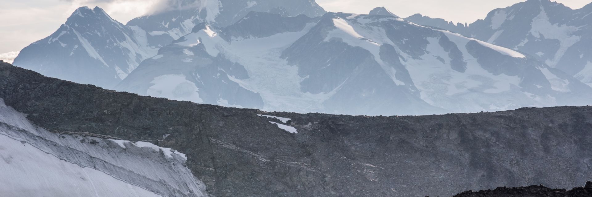 View of Coast Mountains from plateau above Wilderness Lake, BC.